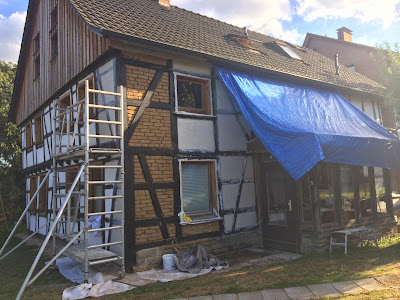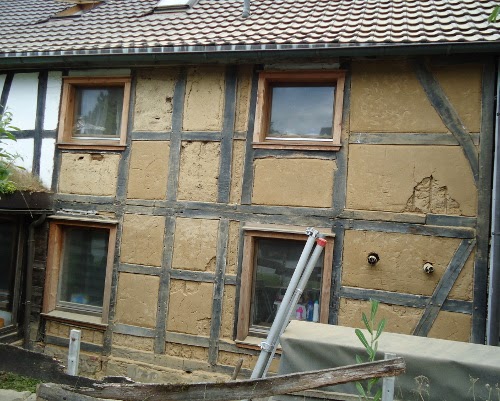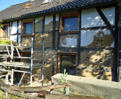 In diesem Sommer hat unser Fachwerkhaus eine neue verputzte Fassade bekommen. Bis zur Fertigstellung waren viele Arbeitsschritte nötig, und in diesem Post fasse ich das Baugeschehen in Bildern zusammen.